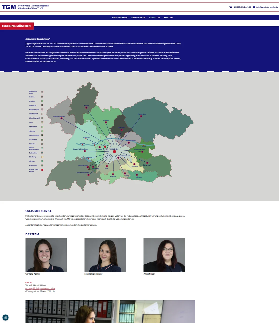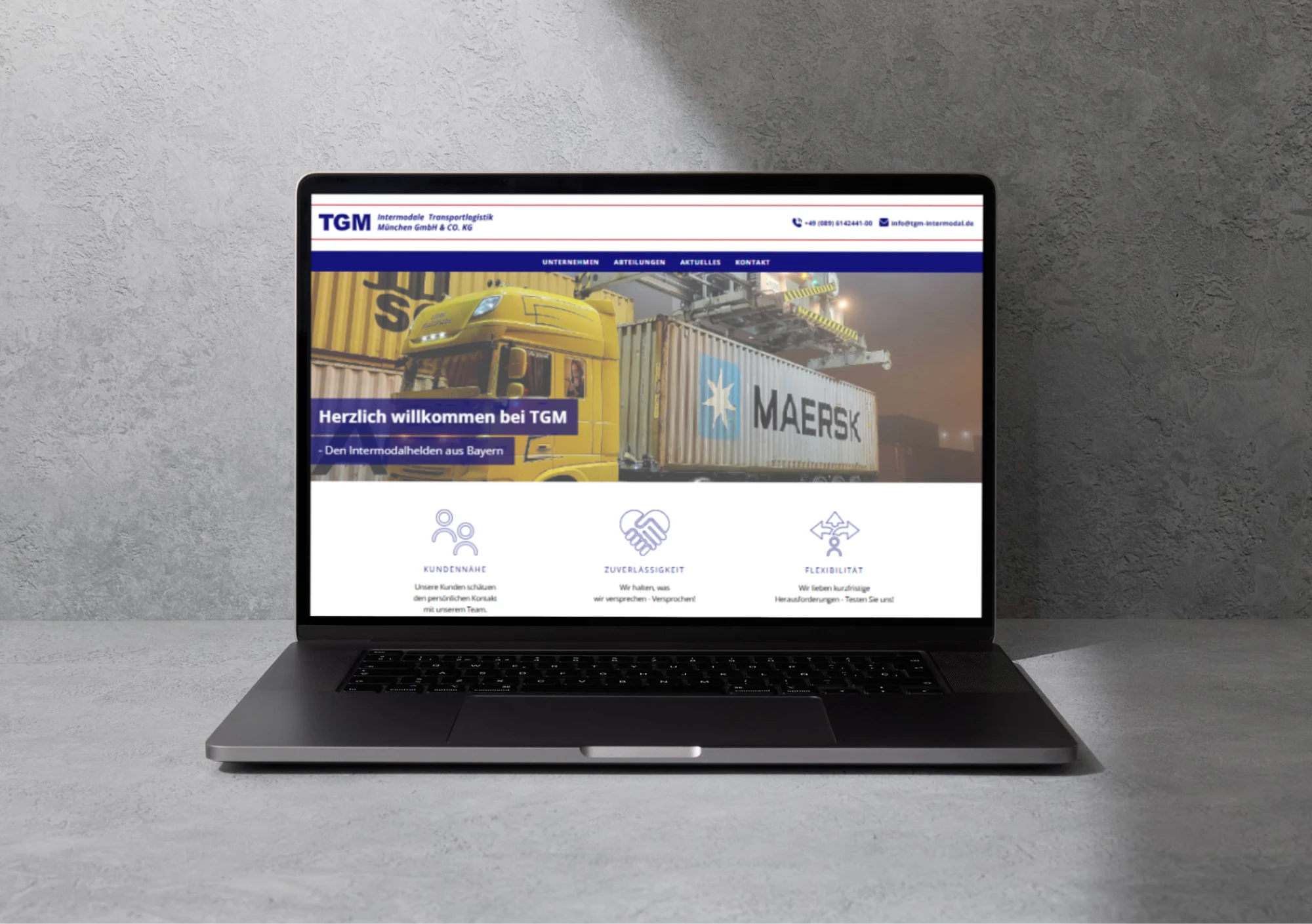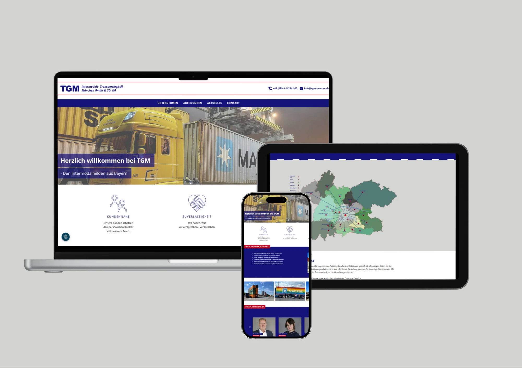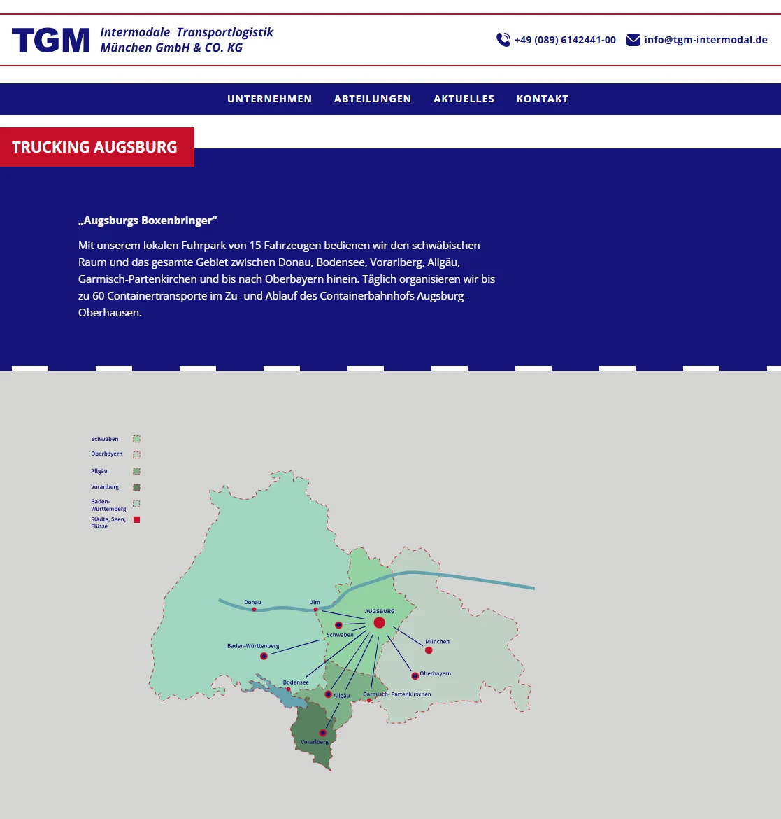 TGM Intermodale Transportlogistik München verbindet verschiedene Verkehrsträger zu nachhaltigen und effizienten Transportketten in ganz Europa. Um diese Stärke auch digital sichtbar zu machen, wurde eine neue, moderne und benutzerfreundliche Website entwickelt. Die Seite besticht durch ein maßgeschneidertes Design: Viele Elemente wurden individuell gestaltet, Karten und Grafiken eigens entworfen und auf den Charakter von TGM zugeschnitten – weit über typische Baukastensysteme hinaus.